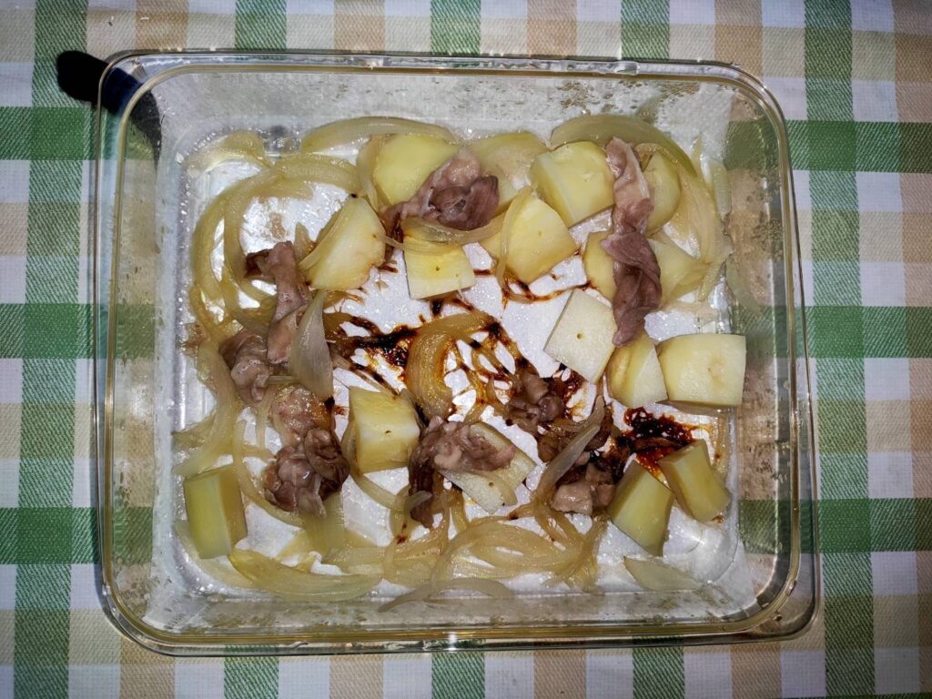 味がしみ込んでいなかった。→器が大きい(18×20センチ)。素材が大きい。調味料が足りない。
